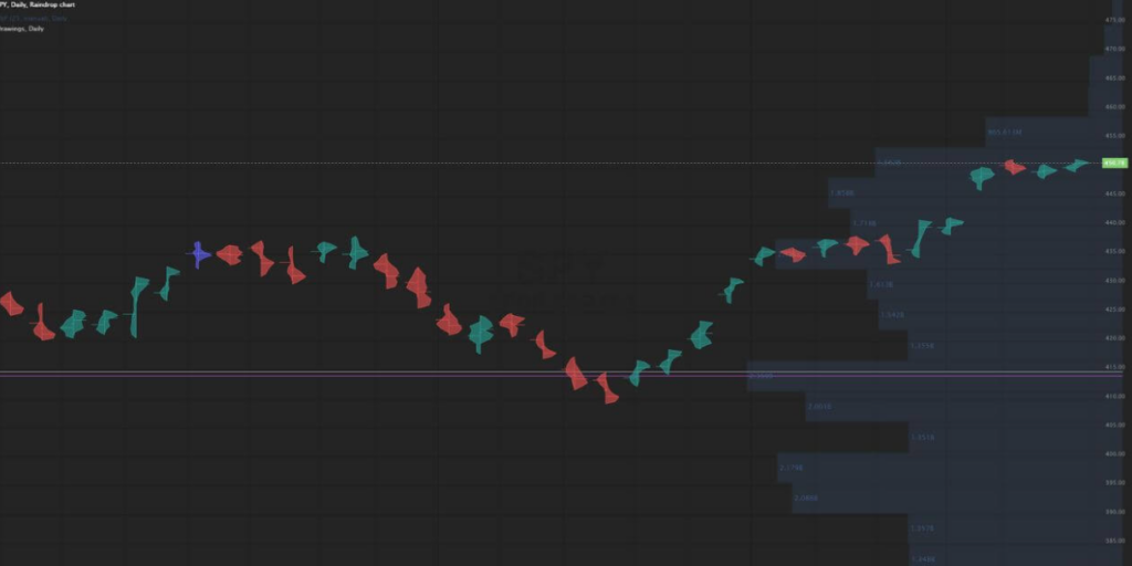 New users quickly see the difference: switch to Raindrops on any timeframe, and suddenly volume tells a clearer story—blue/red coloring shows buyer/seller dominance, and the “body” of the raindrop reveals where real money flowed. It’s especially powerful on lower timeframes for scalping or intraday trading.
